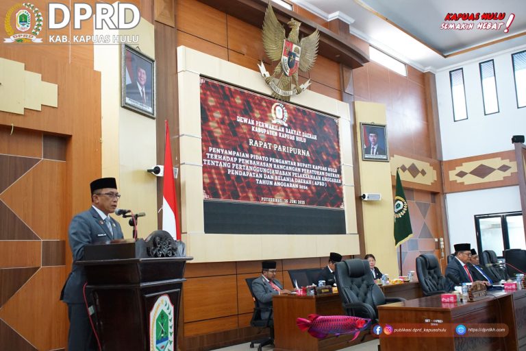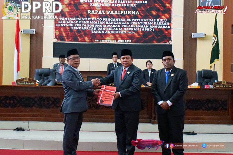 Ketua DPRD Kabupaten Kapuas Hulu, Yanto, S.P., memimpin jalannya Rapat Paripurna dalam rangka Penyampaian Pidato Pengantar Bupati Kapuas Hulu terhadap Pembahasan Rancangan Peraturan Daerah (Raperda) tentang Pertanggungjawaban Pelaksanaan Anggaran Pendapatan dan Belanja Daerah (APBD) Tahun Anggaran 2024. Rapat ini berlangsung di Ruang Sidang Paripurna DPRD Kabupaten Kapuas Hulu pada Rabu (25/6/2025). Turut hadir dalam rapat ini Wakil Bupati Kapuas Hulu Sukardi, S.M., Wakil Ketua DPRD, para Anggota DPRD Kabupaten Kapuas Hulu, Forkopimda Kabupaten Kapuas Hulu, Sekretaris Daerah, Para Asisten, Staf Ahli Bupati, Kepala Perangkat Daerah, Kepala Bagian, Pejabat Administrator dan Pejabat Fungsional di lingkungan Pemerintah Daerah Kabupaten Kapuas Hulu, serta rekan-rekan pers dan tamu undangan lainnya. Sesuai dengan ketentuan dalam Peraturan DPRD Kabupaten Kapuas Hulu Nomor 1 Tahun 2024 tentang Tata Tertib DPRD, khususnya Pasal 137 ayat 1 huruf c, rapat paripurna dinyatakan memenuhi kuorum apabila dihadiri lebih dari setengah jumlah anggota DPRD. Dari total 30 anggota DPRD Kapuas Hulu, sebanyak 19 orang hadir dalam rapat ini, sehingga kuorum terpenuhi dan rapat dapat dilanjutkan. Dalam rapat tersebut, Ketua DPRD Kapuas Hulu Yanto, S.P. menyampaikan bahwa pembahasan pertanggungjawaban pelaksanaan APBD bukanlah sekadar formalitas administrasi, melainkan merupakan bentuk nyata dari transparansi dan akuntabilitas pemerintah daerah kepada masyarakat yang disampaikan melalui lembaga legislatif. “Sebagaimana kita pahami bersama, pertanggungjawaban pelaksanaan APBD bukan semata-mata formalitas administrasi, namun merupakan bentuk nyata dari transparansi dan akuntabilitas pemerintah daerah kepada masyarakat melalui lembaga legislatif,” ungkap Yanto. Ia juga menegaskan bahwa DPRD memiliki peran strategis dalam mencermati secara objektif laporan realisasi anggaran, capaian program dan kegiatan, serta efektivitas penggunaan anggaran yang telah ditetapkan. Dalam kesempatan ini, Wakil Bupati Kapuas Hulu Sukardi, S.M. membacakan pidato pengantar Bupati Kabupaten Kapuas Hulu terkait Raperda Pertanggungjawaban Pelaksanaan APBD Tahun Anggaran 2024. Setelah itu, Wakil Bupati menyerahkan naskah Raperda beserta lampiran laporan keuangan yang telah diperiksa oleh Badan Pemeriksa Keuangan (BPK), ikhtisar laporan kinerja, serta laporan keuangan Badan Usaha Milik Daerah (BUMD) kepada DPRD Kapuas Hulu. Selanjutnya, Raperda ini akan mendapatkan tanggapan dari Anggota DPRD Kapuas Hulu melalui agenda Pemandangan Umum Fraksi-Fraksi yang dijadwalkan pada Kamis, 26 Juni 2025. Melalui proses ini, diharapkan pembahasan Raperda tentang Pertanggungjawaban Pelaksanaan APBD Tahun Anggaran 2024 dapat berjalan dengan baik dan menghasilkan keputusan yang membawa manfaat bagi masyarakat Kabupaten Kapuas Hulu.