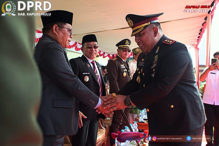 Ketua Dewan Perwakilan Rakyat Daerah (DPRD) Kabupaten Kapuas Hulu, Yanto, S.P., menghadiri Upacara Peringatan Hari Bhayangkara ke-79 yang digelar di halaman Markas Kepolisian Resor (Polres) Kapuas Hulu. Upacara ini berlangsung dengan khidmat dan dihadiri oleh jajaran Forum Koordinasi Pimpinan Daerah (Forkopimda) serta berbagai elemen masyarakat (1/7/2025). Bertindak sebagai Inspektur Upacara, Kapolres Kapuas Hulu AKBP Roberto Aprianto Uda, S.I.K., M.H., memimpin langsung jalannya Upacara. Turut hadir dalam kegiatan tersebut, Bupati Kapuas Hulu periode 2010–2021 Abang Muhammad Nasir, S.H., Wakil Bupati Kapuas Hulu Sukardi, S.M., Kepala Kejaksaan Negeri Putussibau, Ketua Pengadilan Negeri Putussibau, Komandan Kodim 1206/Psb, Komandan Batalyon 644/Wls, Asisten Bupati, Staf Ahli Bupati, Kepala OPD/Dinas, Kepala Instansi Vertikal, Pimpinan Perbankan, Pimpinan BUMN dan BUMD, serta para tokoh agama, tokoh adat, dan tokoh masyarakat. DPRD Kapuas Hulu memberikan apresiasi dan penghargaan yang setinggi-tingginya kepada jajaran Polri, khususnya Polres Kapuas Hulu, atas dedikasi dan pengabdian dalam menjaga keamanan dan ketertiban masyarakat. Hari Bhayangkara bukan hanya momentum seremonial, tetapi menjadi refleksi bersama akan pentingnya sinergi antara legislatif, eksekutif, yudikatif, dan seluruh elemen masyarakat dalam mendukung tugas-tugas kepolisian. Dengan semangat Hari Bhayangkara ke-79, DPRD berharap agar kolaborasi antara DPRD dan Polres Kapuas Hulu terus terjalin erat dalam menciptakan suasana yang aman, damai, dan kondusif di Bumi Uncak Kapuas.
