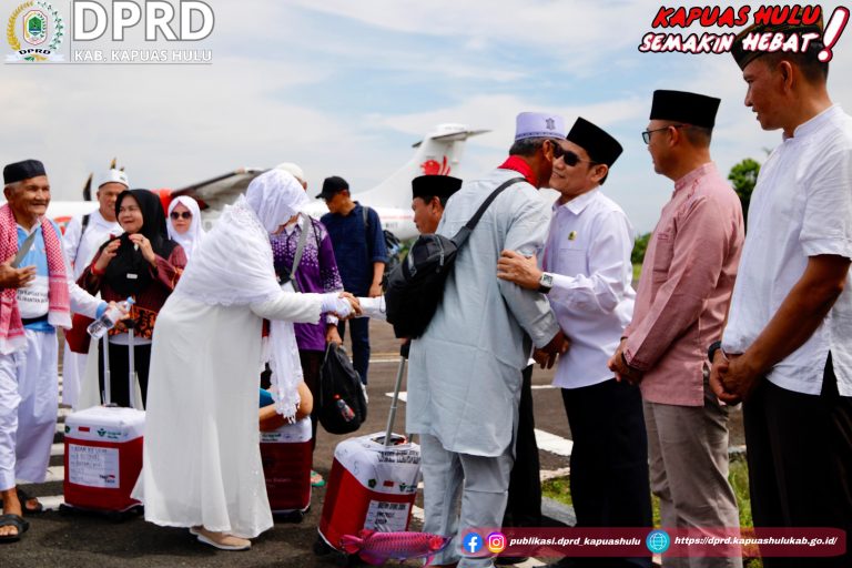 Anggota DPRD Kabupaten Kapuas Hulu, Alfiansyah, S.E., M.Si., menghadiri acara penyambutan kedatangan Jemaah Haji Kabupaten Kapuas Hulu Musim Haji 1446 H / 2025 M yang dilaksanakan di Bandar Udara Pangsuma Putussibau. Kehadiran Alfiansyah mewakili Ketua DPRD Kabupaten Kapuas Hulu sebagai bentuk perhatian dan dukungan terhadap kepulangan para jemaah haji dari Tanah Suci (12/7/2025). Sebanyak 12 orang jemaah haji tiba lebih awal menggunakan pesawat dari Pontianak menuju Putussibau. Mereka didampingi langsung oleh Wakil Bupati Kapuas Hulu, Sukardi, S.M., beserta istri yang juga merupakan Ketua GOW Kabupaten Kapuas Hulu, Ny. Nordimin Sukardi, S.M. Keduanya turut mendampingi para jemaah selama perjalanan udara sebagai bentuk kepedulian dan penghormatan terhadap para tamu Allah tersebut. Turut hadir dalam penyambutan ini Sekretaris Daerah Kabupaten Kapuas Hulu Drs. Mohd. Zaini, M.M., jajaran Forkopimda Kabupaten Kapuas Hulu, Camat Putussibau Selatan, masyarakat, serta keluarga besar para jemaah haji yang telah lama menanti kepulangan orang-orang tercinta. Sementara itu, sebanyak 120 orang jemaah haji lainnya bersama satu orang pendamping dijadwalkan akan tiba di Putussibau pada hari Minggu, 13 Juli 2025, melalui jalur darat menggunakan bus. DPRD Kabupaten Kapuas hulu mengucapkan rasa syukur atas kepulangan para jemaah dalam keadaan sehat dan selamat. DPRD Kabupaten Kapuas Hulu juga senantiasa mendukung penuh kegiatan-kegiatan keagamaan, termasuk penyelenggaraan ibadah haji yang menjadi salah satu bentuk penguatan spiritual masyarakat. Kegiatan penyambutan ini berlangsung penuh kehangatan, haru, dan suka cita, mencerminkan kebersamaan dan semangat gotong royong masyarakat Kapuas Hulu dalam menyambut kepulangan para jemaah haji yang telah menunaikan rukun Islam kelima.